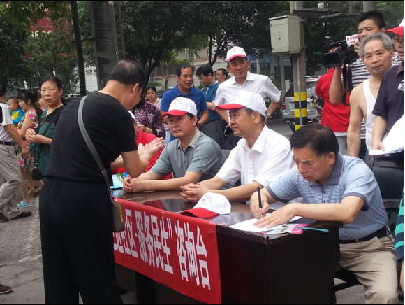 市住建委主任委員楊劍(中)、市供水總公司總經(jīng)理陳衛(wèi)國(guó)(左一)在“走進(jìn)社區(qū)、服務(wù)民生,走進(jìn)企業(yè)、服務(wù)發(fā)展”活動(dòng)中,深入龍泉街辦團(tuán)結(jié)社區(qū)了解群眾訴求,解決具體問(wèn)題。