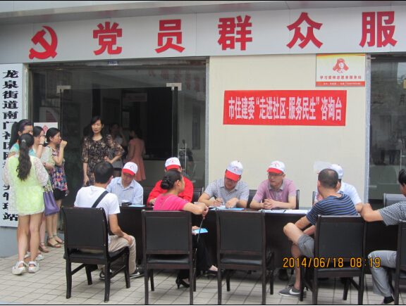 市供水總公司黨委書記陳永根(左二)在“走進(jìn)社區(qū)、服務(wù)民生,走進(jìn)企業(yè)、服務(wù)發(fā)展”活動中,深入龍泉街辦南門社區(qū)傾聽用戶呼聲,辦實(shí)事,解難題。