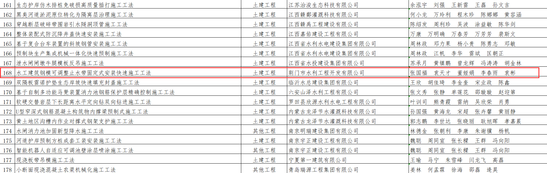 近日,中國水利工程協(xié)會公布了2025年度水利行業(yè)工法名單,荊門市城市水務集團有限公司下屬單位荊門市水利工程開發(fā)有限公司(以下簡稱“荊門水發(fā)”)申報的“水工建筑鋼??烧{(diào)整止水帶固定式安裝快速施工工法”順利通過評審,正式被確認為中國水利行業(yè)工法,為水利工程標準化、高效化建設提供了有力支撐。