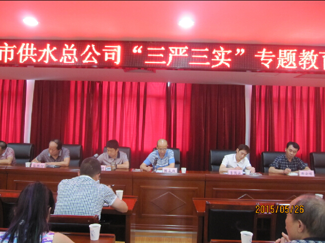 5月26日下午,市供水總公司在六樓會議室召開三嚴三實專題教育活動動員會,黨委書記、總經(jīng)理陳永根聯(lián)系公司實際為全體黨員上黨課。公司全體黨員、中層以上干部100余人參加,會議由黨委副書記、紀委書記、工會主席徐黎明主持。