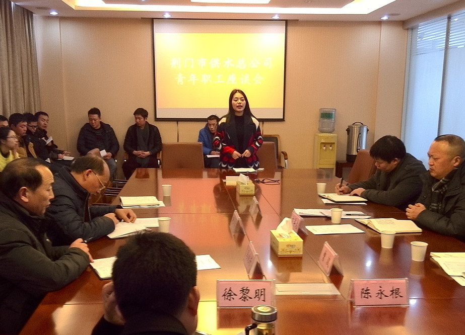 1月22日下午,市供水總公司召開青年職工座談會??偣究偨浝?、黨委書記陳永根出席會議并講話,總公司黨委副書記、紀委書記徐黎明,副總經理曾波和部分中層干部及30余名青年職工代表參加座談。