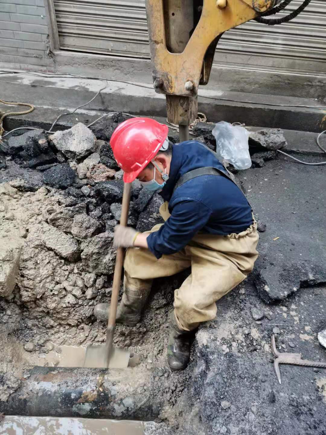 1月28日8時,白云大道農(nóng)行家屬區(qū)門口DN100管道爆裂,因在人行道上,地下管線交錯復(fù)雜,不能用工程機械開挖,黃磊帶領(lǐng)班組人員硬是挨著管線用手刨釬撬,人工開鑿出搶修坑,在連續(xù)奮戰(zhàn)3個小時后,趕在用水高峰期搶修完畢給用戶通水。這邊剛搶修完,那邊又接到值班電話通知建設(shè)街DN200管道漏水,如不及時搶修,在漏水失壓的情況下會造成大面積用戶無水,黃磊沒有一絲懈怠,立即組織人員、機械到現(xiàn)場,簡單吃了一桶泡面又投入到搶修工作中,搶修現(xiàn)場居民感動不已,紛紛送來手套、口罩、方便面等慰問品。下午3時,多輝農(nóng)產(chǎn)品市場因封路時挖機將DN50管道拉斷,考慮到已經(jīng)連續(xù)奮戰(zhàn)多時,公司領(lǐng)導(dǎo)準備安排其它維修班組去搶修,其他隊伍集結(jié)需要時間會耽誤疫情控制,而且位處垃圾堆有感染風險,黃磊主動請纓出戰(zhàn)。晚上22時,黃磊又接到出警電話,因楊家橋DN300管道爆裂,路上汪洋一片。他其實搶修完才到家一會,但黃磊沒有遲疑,立即聯(lián)系機械進場,在班組微信群通知集結(jié)路線,沿路接人,在他的帶領(lǐng)下,從維修材料準備到人員機械到位用了不到40分鐘,因開挖后形成的基坑深度達近5米,為保障人工深基坑作業(yè)安全,黃磊一刻也沒離開基坑,直到凌晨5時搶修完畢。